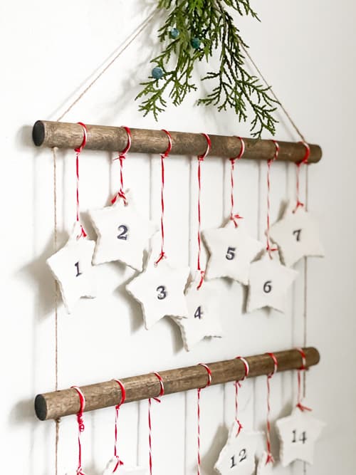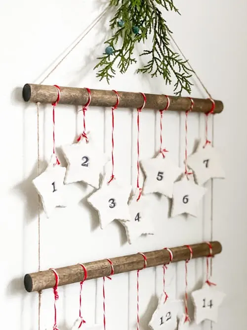 A beautiful DIY Scandinavian advent calendar tutorial that blends simplicity, natural materials, and clean lines—perfect for Nordic styling. Each clay star is stamped and hung from wooden dowels, creating a festive countdown display with Scandinavian charm and minimalist appeal.