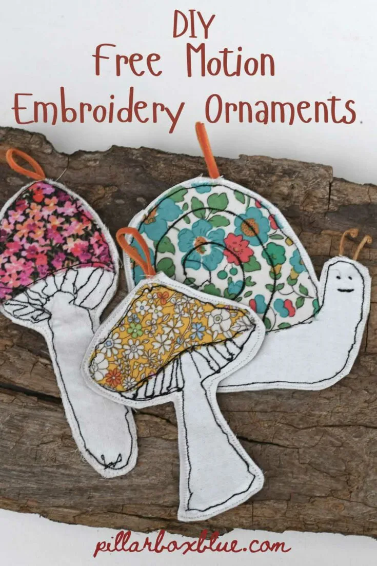 Add a touch of whimsy to your fall decor with this DIY fabric garland of mushrooms and snails! Learn how to use free-motion embroidery to stitch adorable appliqué ornaments from scrap fabric. Perfect for cosy autumn decorating, gifts, or just because you can’t resist cute fungi and snail friends.
