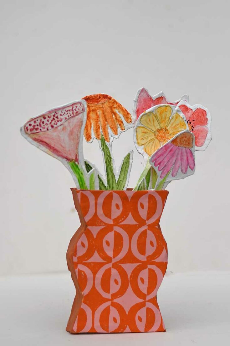 These lightweight paper mache vases are perfect for displaying paper or fabric flowers. They are made from cardboard, newspaper, and glue—simple and stylish!