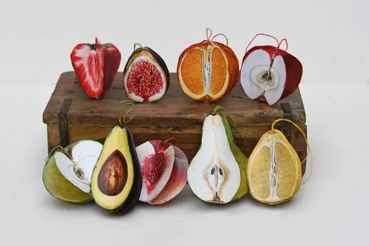 Add a pop of colour to your décor with these free printable 3D paper fruit ornaments made from vintage fruit illustrations. There are nine free printable fruits to choose from, including apples, pears, lemons, oranges, strawberries, peaches, figs and avocados.