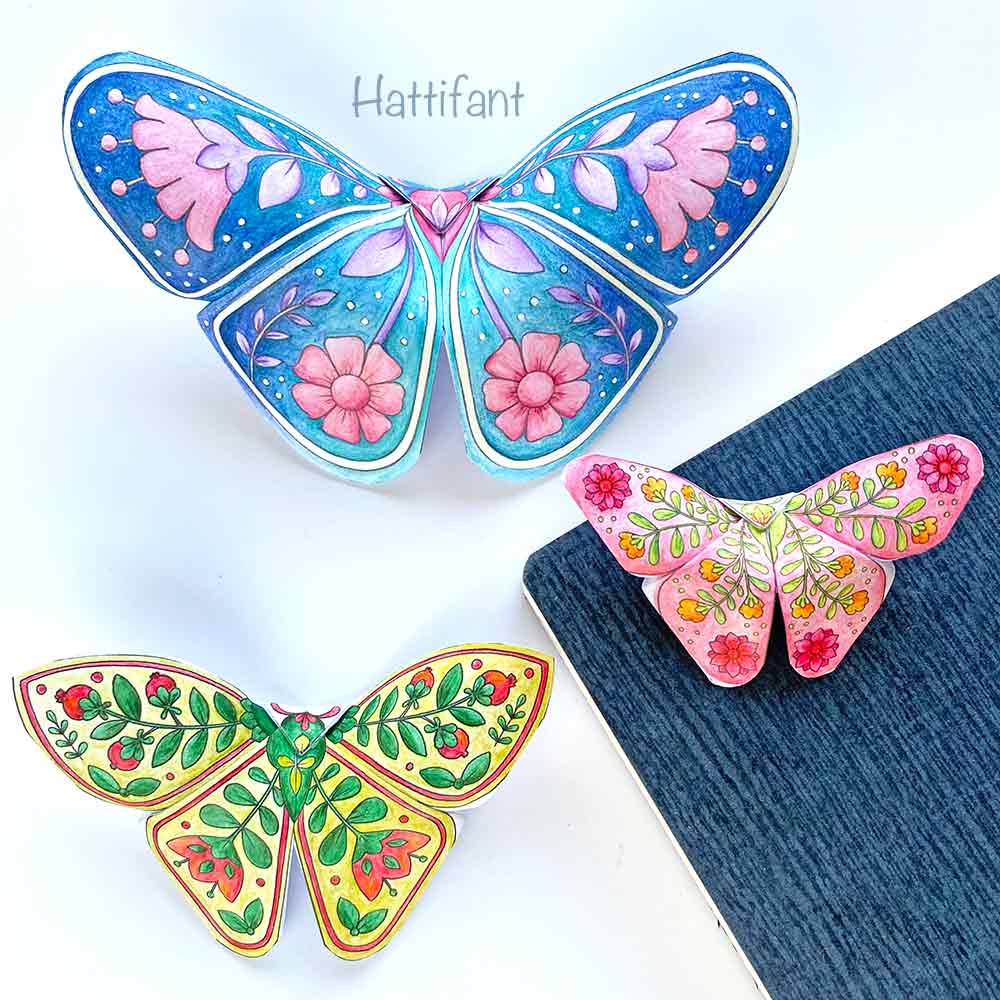 These printable templates let you colour and assemble gorgeous 3D butterflies with a Scandinavian folk art vibe, making a charming butterfly craft that feels both creative and meditative. They’re surprisingly simple to fold and glue, plus you get five unique designs in three different sizes to mix and match wherever you’d like that fluttering touch.
