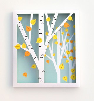 Using a free printable template, you can hand-cut and fold layers of cardstock into a beautiful birch tree shadow box. The finished piece feels like a little window into the woods and makes a simple, elegant bit of DIY décor.