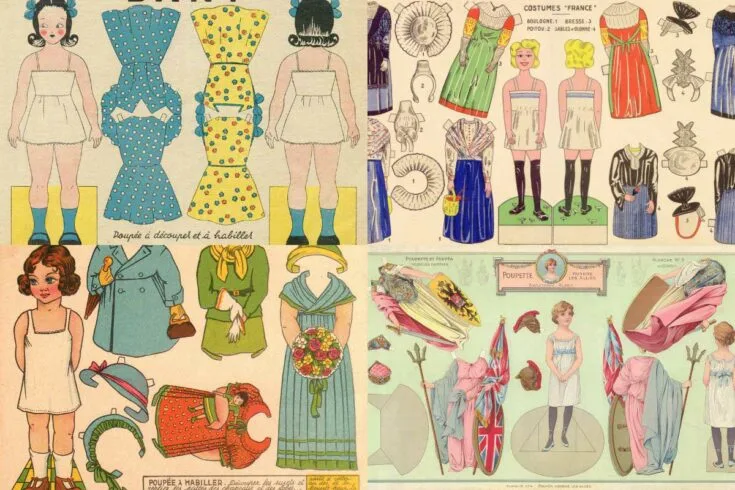 Time travel via paper! These free printable vintage paper dolls come with beautifully detailed outfits, print, cut, and dress them up for nostalgic crafting, journaling, or decoupage magic.