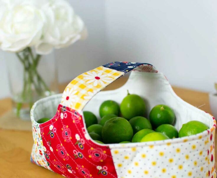 A free sewing pattern to make simple fabric baskets from scraps. Great for corralling bits and bobs or gifting spring blooms. Use leftover cottons or upcycled fabric for colourful, practical bins with a handmade feel.